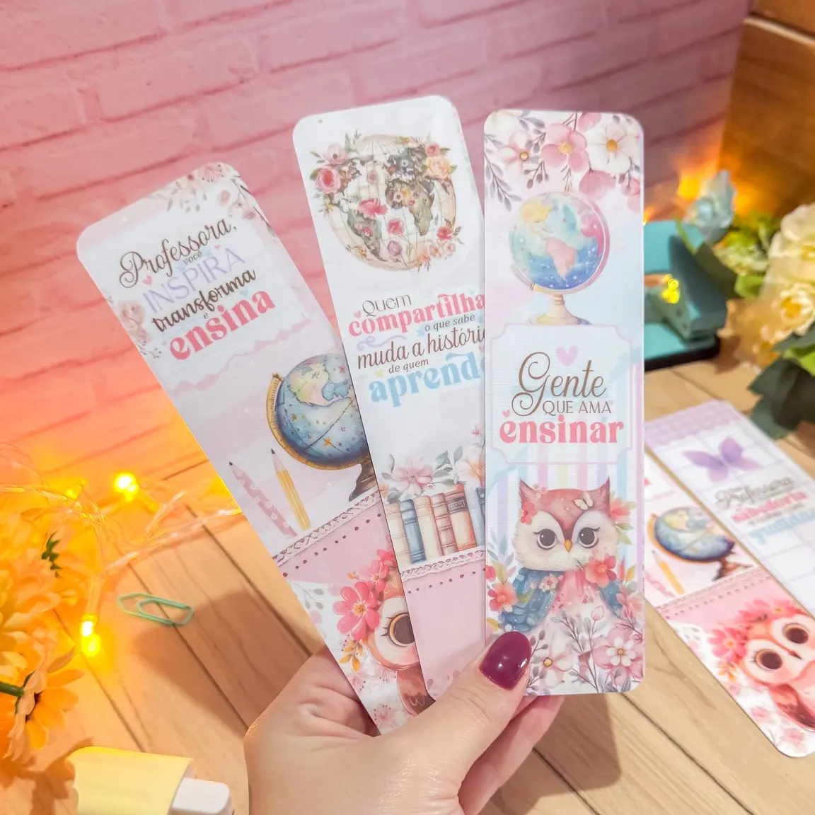 Organize suas leituras e materiais com elegância utilizando nossos marca-páginas temáticos para professores. Perfeito para presentear educadores ou presentear a si mesmo, este conjunto adiciona um toque especial à sua coleção de papelaria.