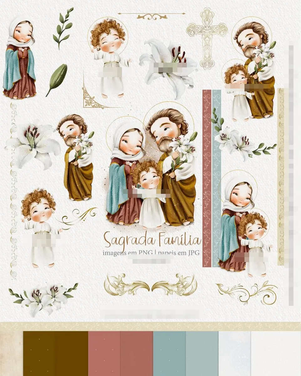 Descubra o Kit Digital Sagrada Família Aquarelado Png, uma coleção encantadora e de alta qualidade que inclui ilustrações com técnicas de aquarela deslumbrantes. Este kit foi cuidadosamente desenvolvido para enriquecer seus projetos criativos com um toque de arte e delicadeza.