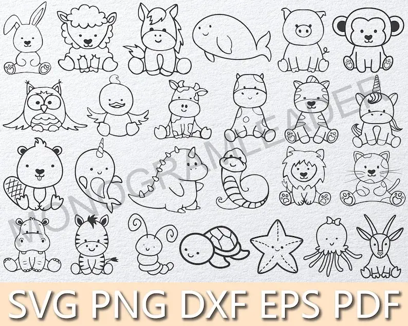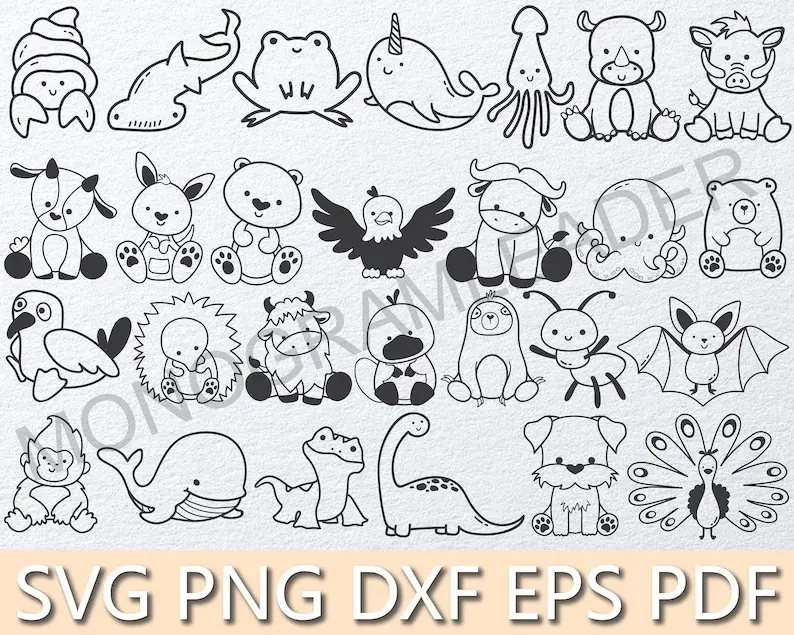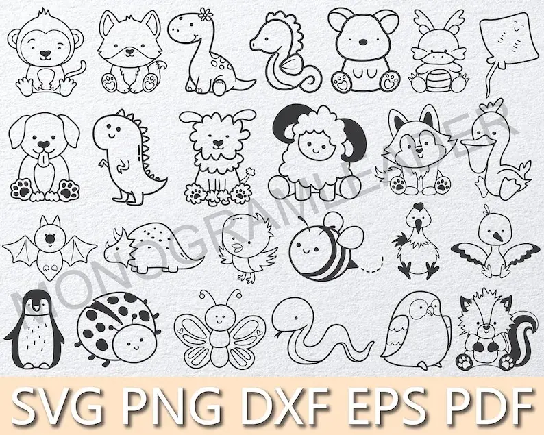 animaiscolorirdxfepsilustraçãokit digitalpdfpngsvg