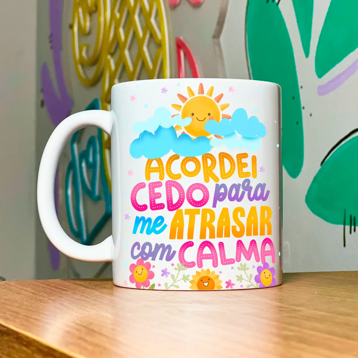 - Frase Caneca Acordei cedo para me atrasar com calma