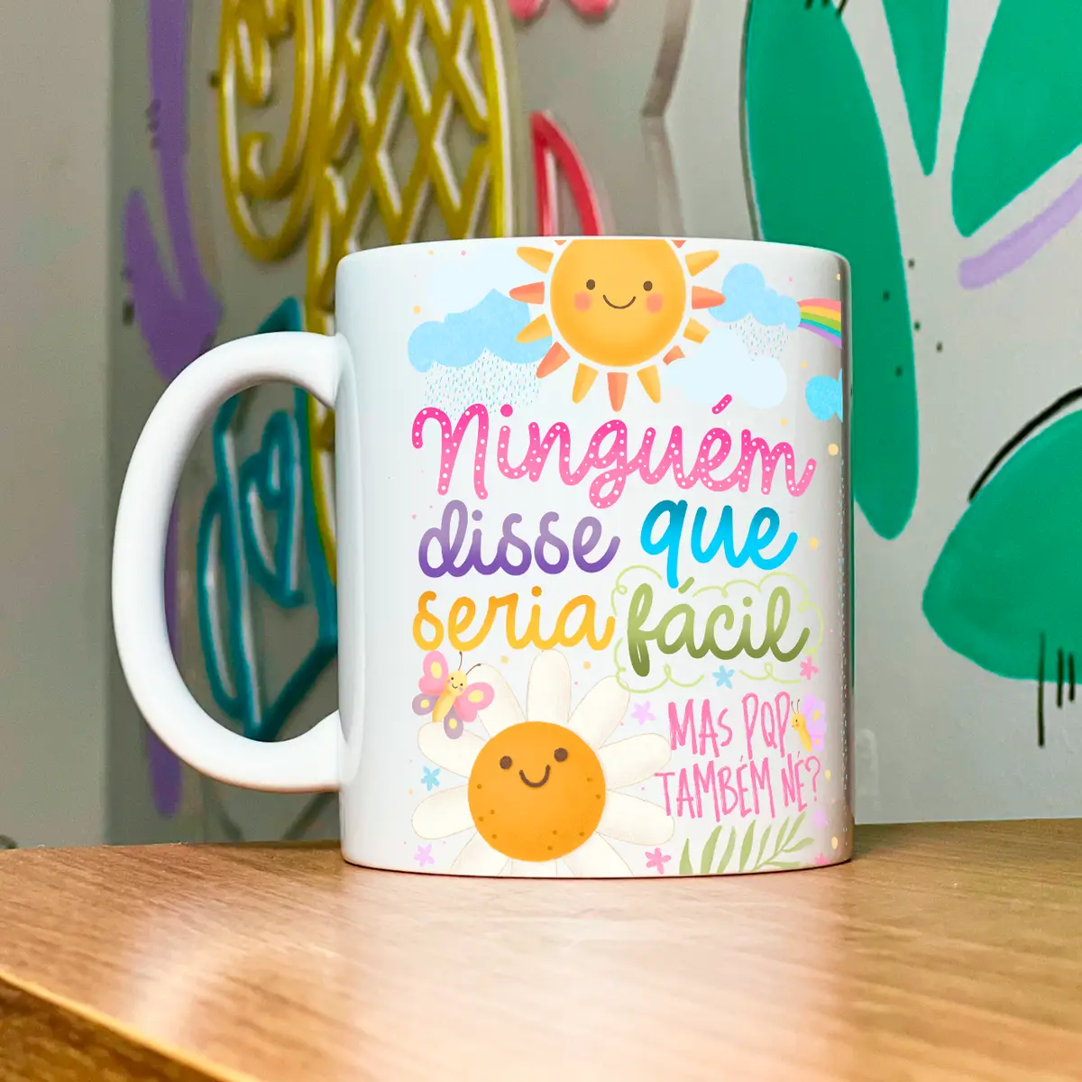 - Frase Caneca Ninguém disse que seria fácil, mas pqp, também né?