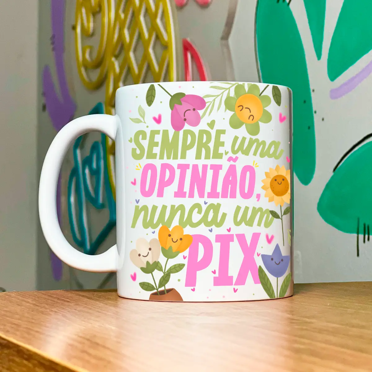 - Frase Caneca Sempre uma opinião, nunca um PIX