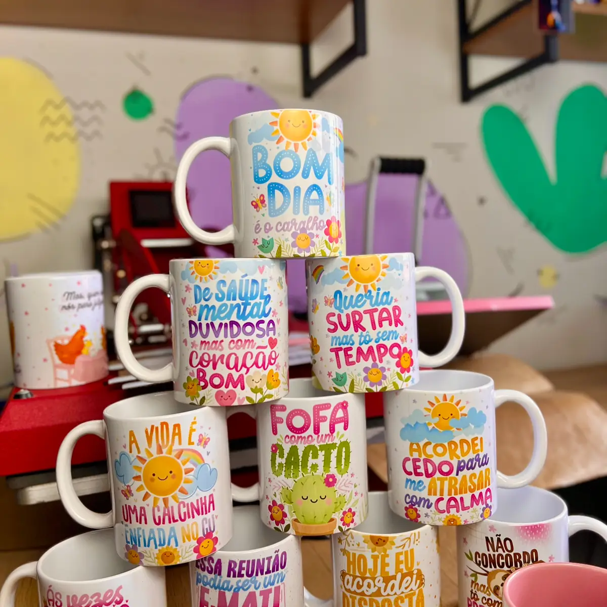 Além das canecas, essas ilustrações também podem ser aplicadas em outros produtos sublimáveis, como squeezes, almofadas e placas decorativas. Todas as artes estão em alta resolução, garantindo impressões nítidas, cores vivas e um acabamento profissional em qualquer tipo de produção.
